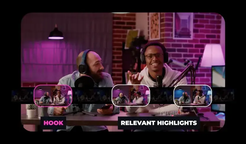 AI analyzes your video to identify the most compelling hooks, extracts relevant juicy highlights from different parts of your video, and seamlessly rearranges them into cohesive viral short videos.