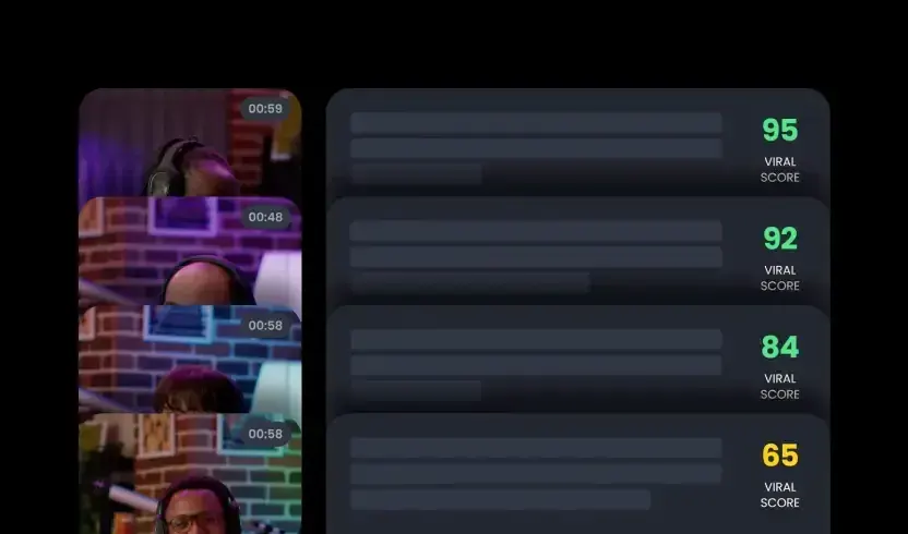 AI automatically generates a score to show the virality potential of each short clip. The score is based on AI’s analysis on thousands of viral videos.